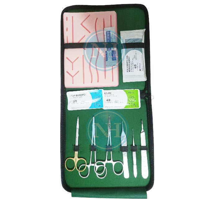 For Student Basic Suture Practice Kit/Training Kit 19 Pieces with Leather Packaging Pouch Suture Tool Kit and Suture Threads (Education and Demonstration Only)